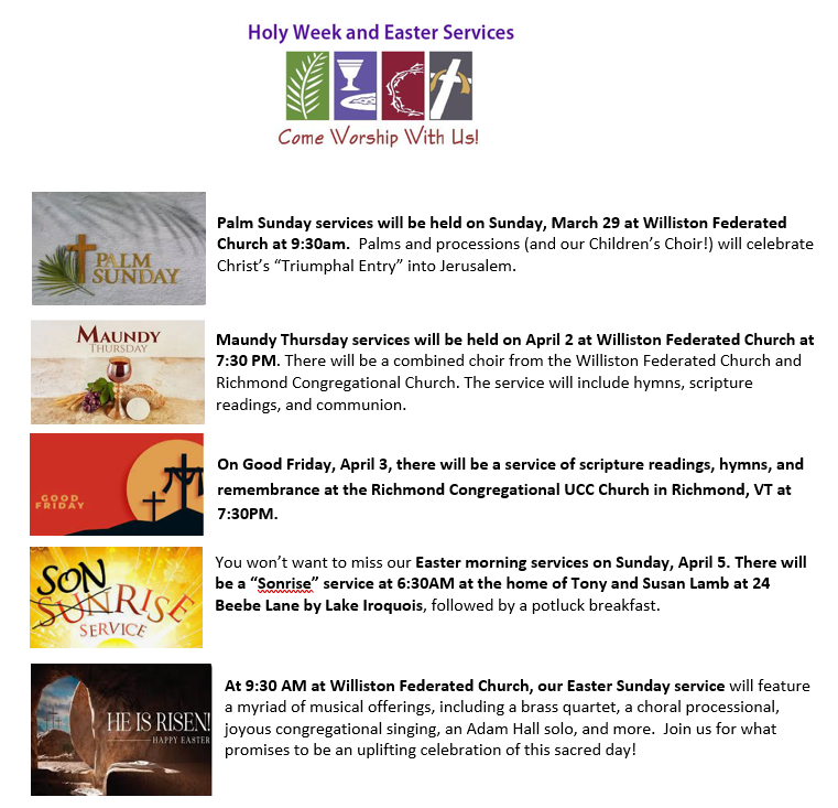 We are looking for donations of gently worn clothing for all ages, clean and in good condition, as well as linens, shoes, jewelry, purses. Think textiles. Please no household items. Donations may be brought to Fellowship Hall beginning Monday, March 23rd. Tables will be set up and labeled. If you have time, please take a moment to place your items on the appropriate tables. Folks are needed to help with table set up on Sunday the 22nd after coffee hour, sort clothes during the week, work at the sale Friday & Saturday and to help take the left over items to Restore, Resource & Goodwill on Saturday. If you can help, please sign up on the bulletin board near the kitchen or contact Carol Bouchard at 862-7400 or carolcbouchard@gmail.com Note: Please no donations before March 23rd